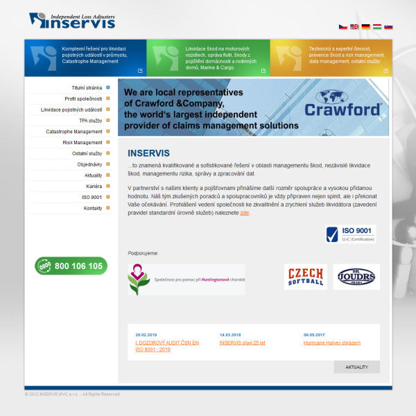 Celý náš tým INSERVIS je plně připraven spolupracovat na likvidaci škod a to jak lokálně, tak v síti partnera CRAWFORD.